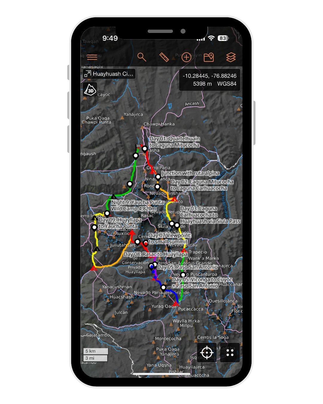 • complete daily GPX tracks following my custom 10-day Huayhuash Circuit adventure route