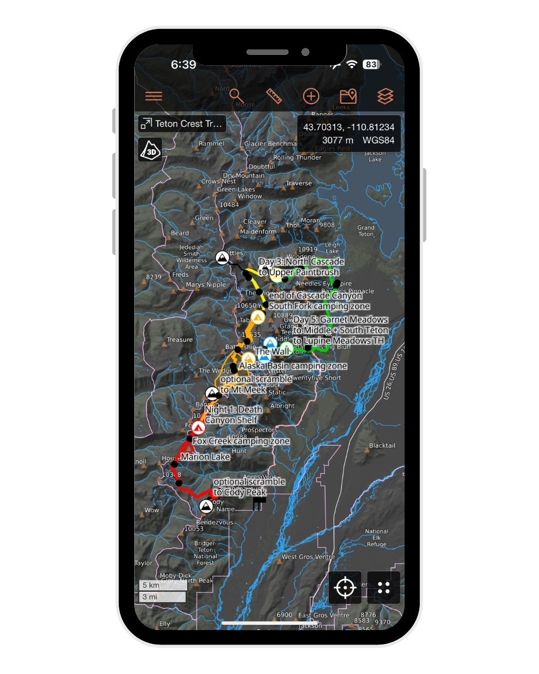 • complete daily GPX tracks following my custom 5-day Teton Crest Trail itinerary